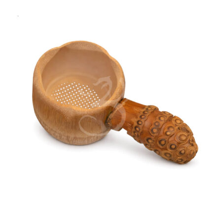 Přírodní bambusové sítko na čaj z kořene – ručně vyráběné o rozměru cca 5,5 × 10–12 cm (může se mírně lišit díky ruční výrobě)