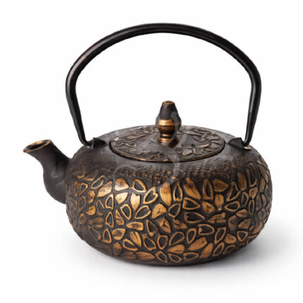 Stylová litinová konvice v černo-zlatém provedení s jemným reliéfem srdcí. Díky smaltovanému vnitřku se snadno udržuje a litina dlouho udrží teplo. Součástí je nerezové sítko na sypaný čaj.