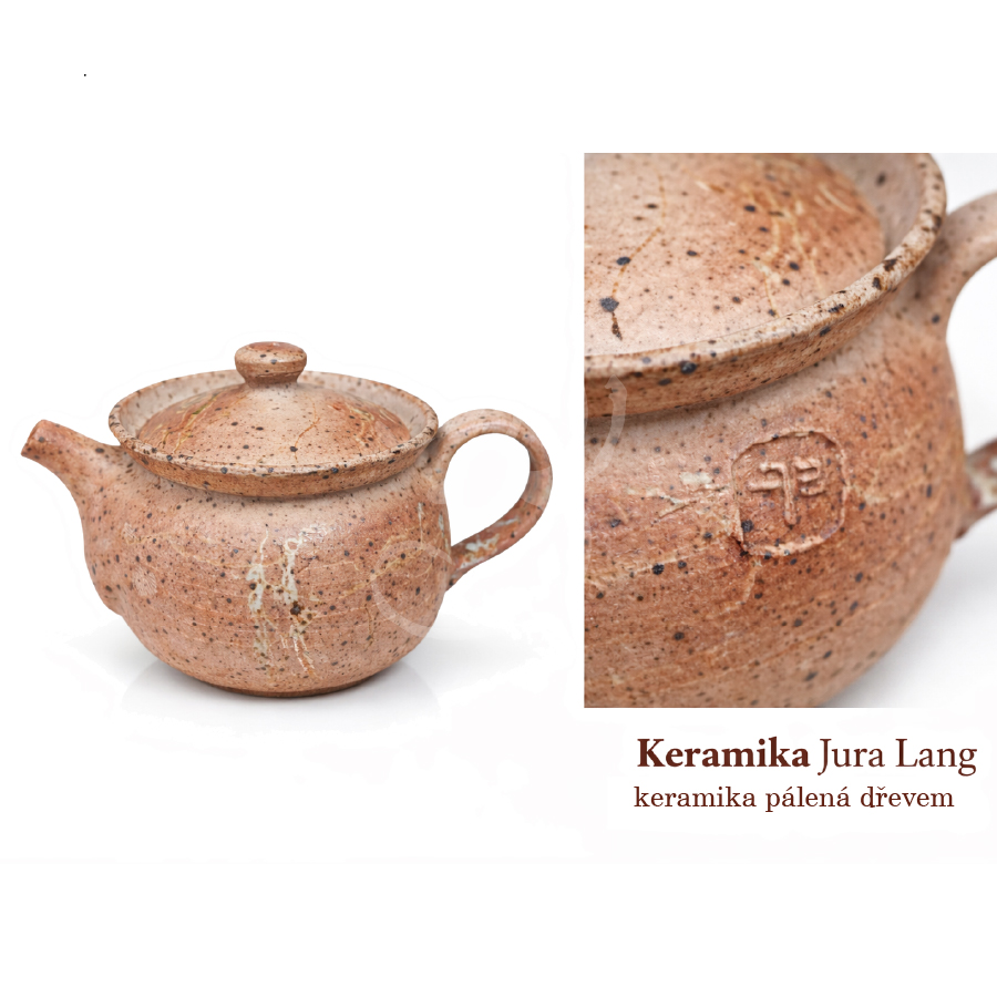 Ručně vyráběná čajová konvička od českého keramikáře Jura Langa, vytvořená metodou dřevem pálené keramiky. Konvička má objem cca 200 ml