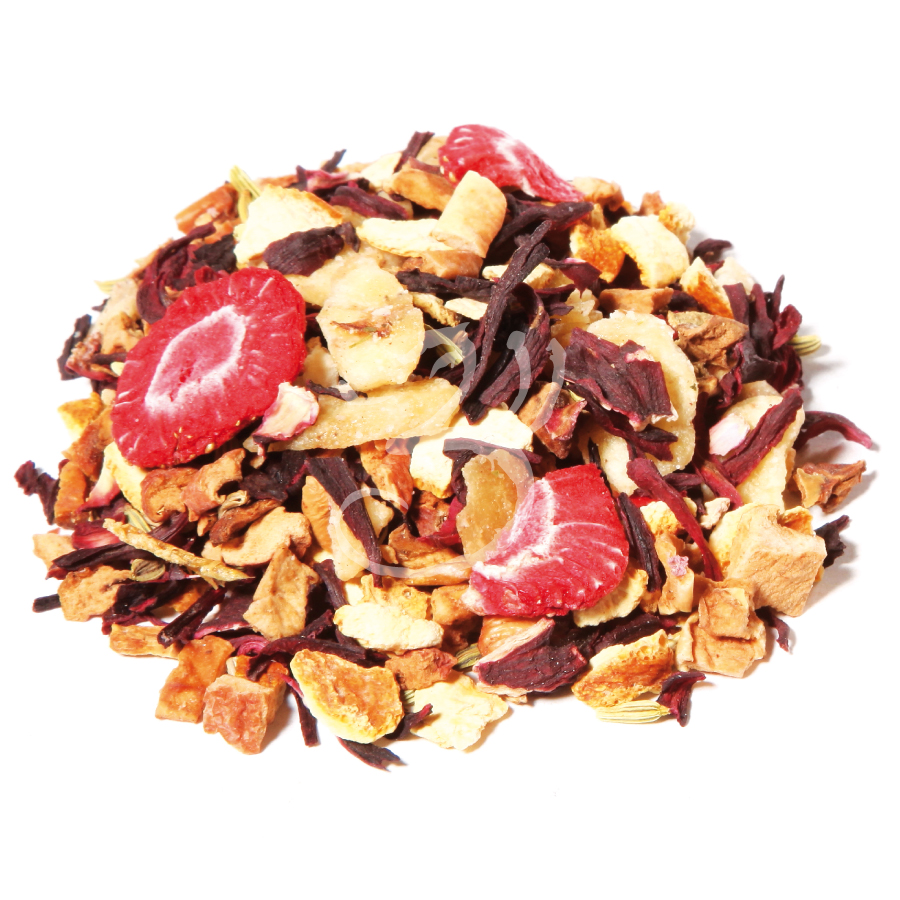 Složení čaje: jablka, ibišek, pomerančová kůra, fenykl, banán (banán, kokosový olej, třtinový cukr, med), jahoda, přírodní aroma, přírodní pomerančové aroma. Prémiová směs s přísadami z udržitelného pěstování a přírodními aromaty.