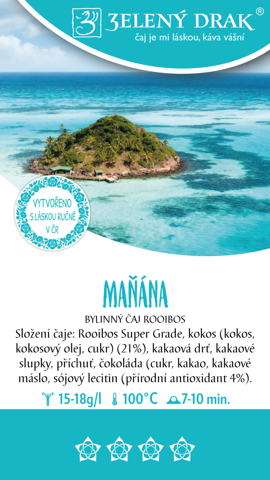 Čokoláda a kokos? Hmmm?, zní to exoticky a je to exotický nápoj se skvělou chutí kokosu a sladké čokolády. Pokud máte rádi kokos nenechte si tento lahodný rooibos utéct.