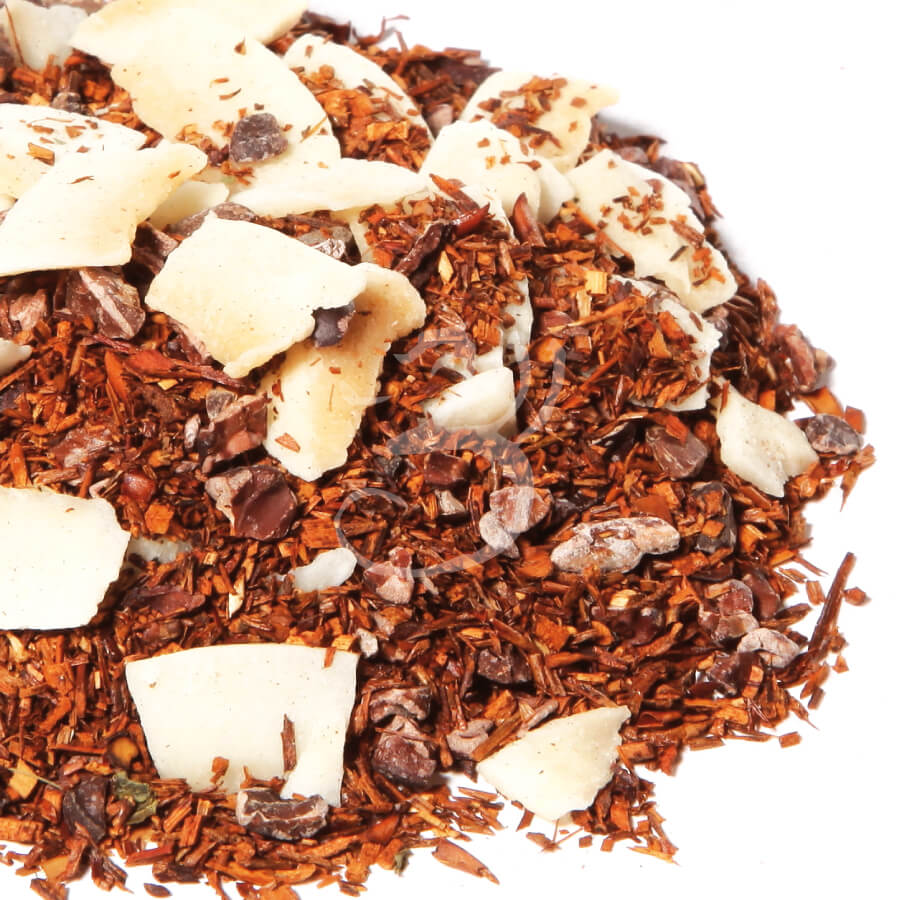 Čokoláda a kokos? Hmmm?, zní to exoticky a je to exotický nápoj se skvělou chutí kokosu a sladké čokolády. Pokud máte rádi kokos nenechte si tento lahodný rooibos utéct.