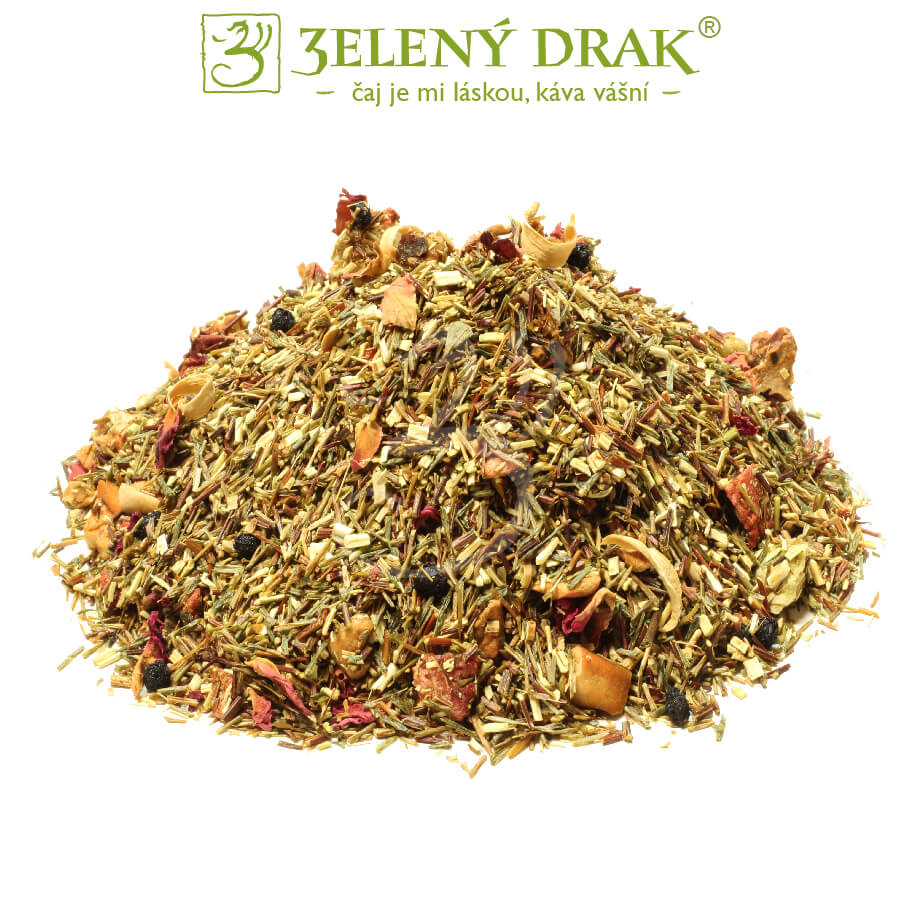 Složení: zelený rooibos (min.80%), kousky jablek, aroma, melounové vločky, plátky jablek, mrazem sušené jablečno spirulinové kousky (jablečný koncentrát s vitaminem C a Spirulinou platensis) (2%)