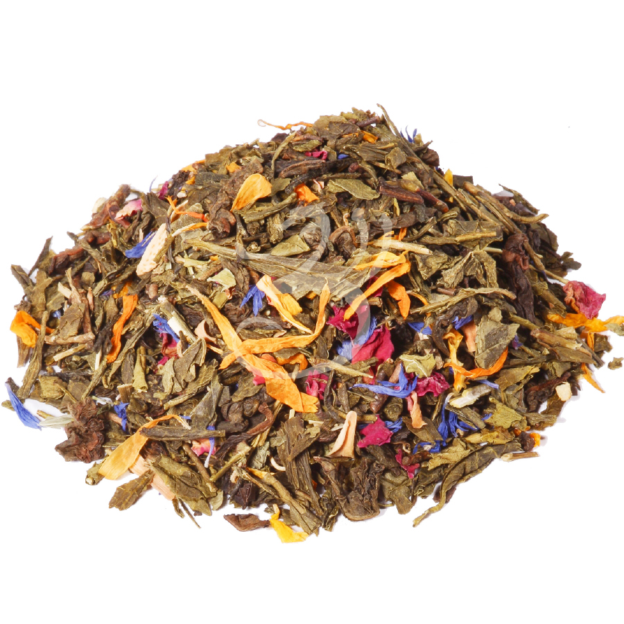 Složení: zelený čaj Sencha Čína, Oolong čaj, okvětní lístky růží, květy chrpy, květ měsíčku lékařského, pomerančový květ, přírodní aroma, mučenkové listy.